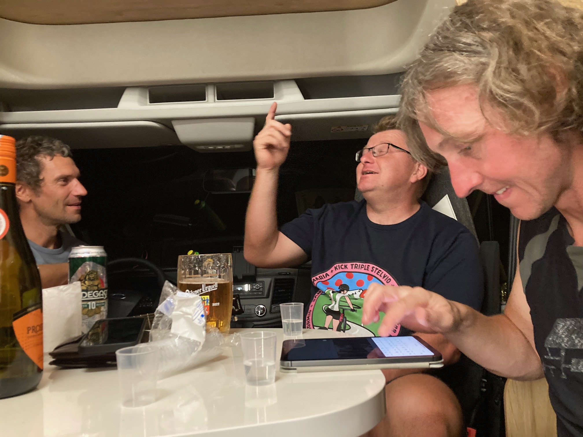 Někteří závodníci dorazili už v pátek, včetně výborné brněnské party. Ta ale byla schována v kempu u Vodňan. Pak také přikodrcal celý cirkus z Turnova, s hlavním řidičem Tomášem Hájkem, který po cestě posbíral koloběžkářskou špičku, K. Cvalína a Marčána. Jako vždy inkognito vlakem dorazil mistr předlouhých závodů Michal Veselský. Nesmím zapomenout na taťku a mamku Štorkovi. Večer jsme se z hospůdky přesunuli do pojízdné klubovny a tam kromě jiného pořád padalo slovo Vuelta, Vuelta, Vuelta.., tak nevím co to mělo znamenat?